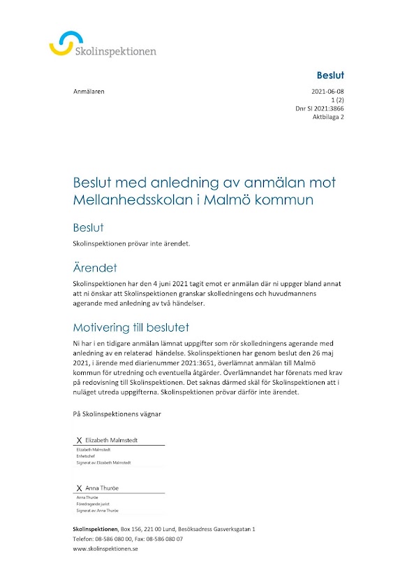 Historiel rarf reningen Skolinspektionen l gger inte Malm stad att